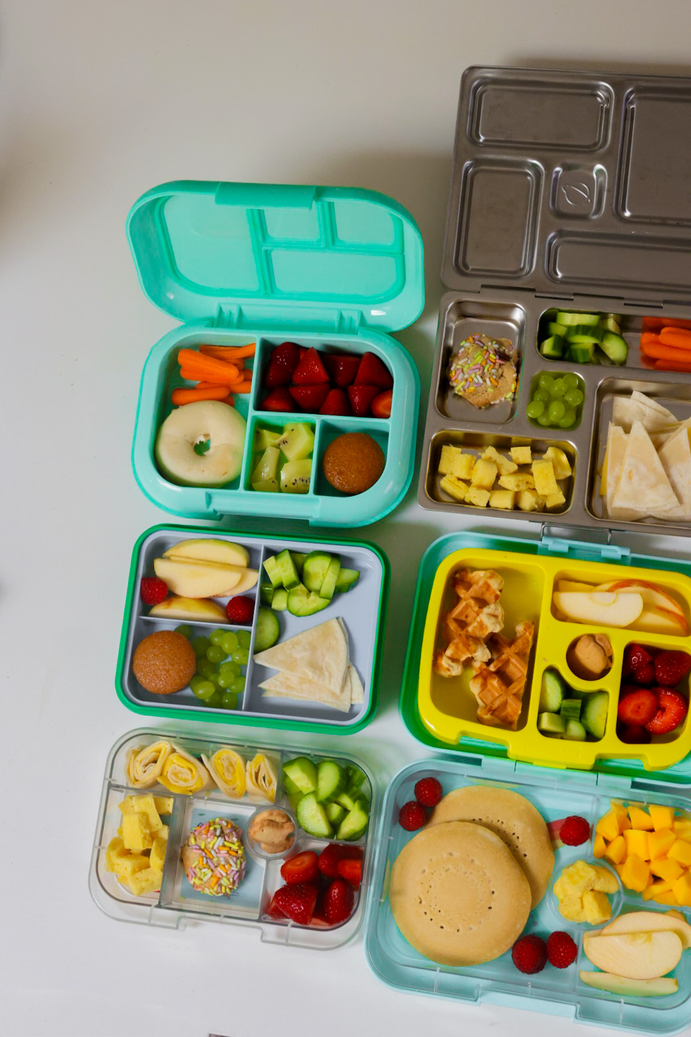 Want a week’s worth of inspiration? Here’s how I’d build five colorful, kid-approved lunchboxes using the ideas above.
