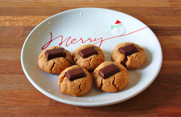 "This is my new (as of this year) favourite holiday cookie recipe! Peanut Butter Chocolate Chunk Cookies. I love them because they can be made in under 10 minutes and they're secretly healthy and full of protein! So you can eat them all holiday season without so much christmas-cookie-binge guilt!"