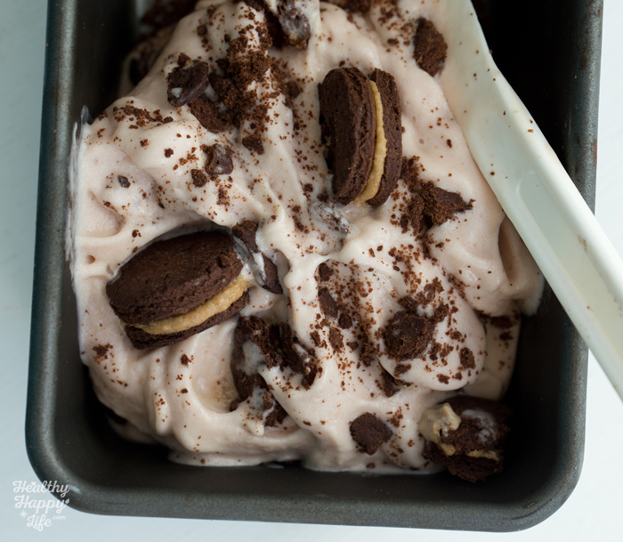 My favorite ice cream flavor ever: Cookies and Cream. Those crumbly, softened dark black chocolate cookies crumbling their way through luscious, silky vanilla ice cream, white and black-speckled. Bits of rich cookie against the pure white vanilla simplicity. Flavors reminiscent of dunking a chocolate sandwich cooking in a chilled glass of (non-dairy) milk.
