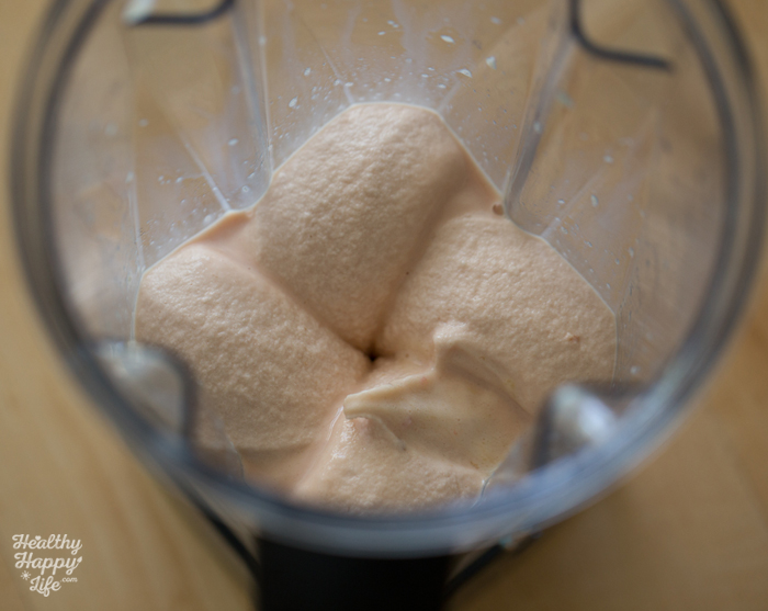 - Add all vegan ice cream ingredients to a Vitamix or another high speed blender. Start out with just ½ cup liquid and add more as needed to blend. Blend until creamy smooth.