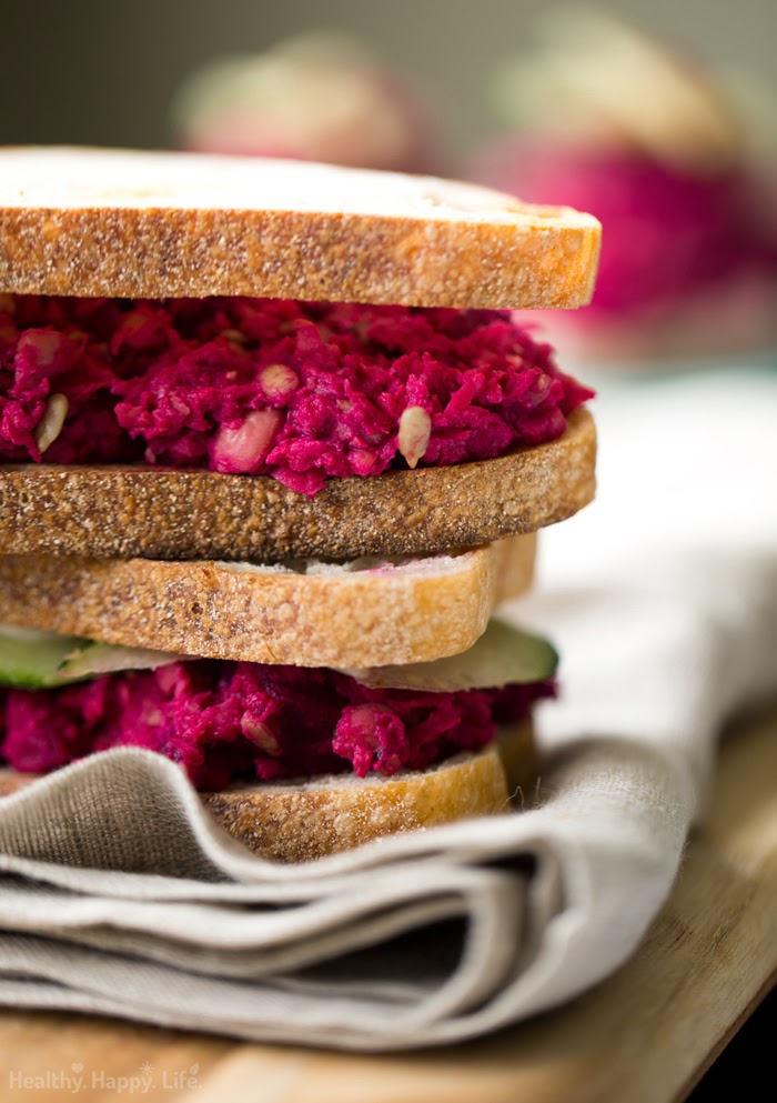 Tags: salad,sandwich,beets,chickpeas,lunch,vegan,easy,pink
