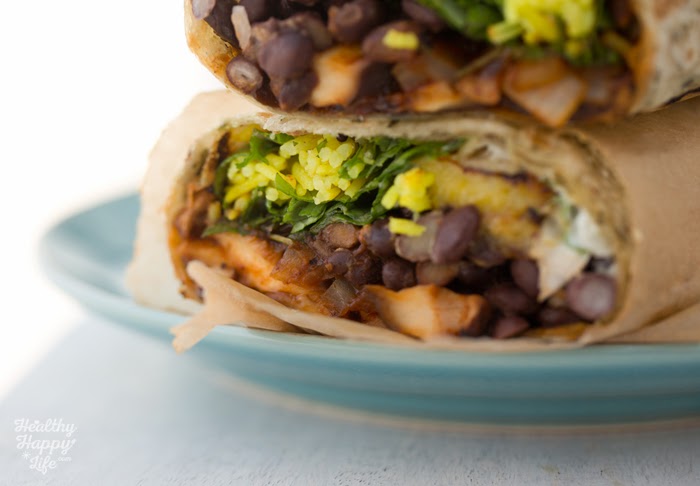 These Plantain Black Bean BBQ Wraps make a delicious handheld dinner. Crispy, caramelized, sticky-sweet plantains mingle with black beans and a spicy, flavorful shiitake mushroom-onion BBQ sautè. Add in some lively greens, buttery avocado and some optional add-ins like salsa, citrus and vegenaise and you have yourself a very cravable meal. Wrap up dinner! ... or not, actually all these filling ingredients make a delicious "burrito bowl" too!..