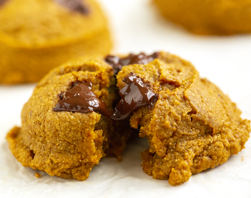 I used a whole wheat pastry flour, but you can experiment with all purpose flour or even a gluten-free blend, if desired. these are tender and buttery, sweet, but not too sweet. They have a sort of pumpkin pie meets chocolate chip cookie flavor.