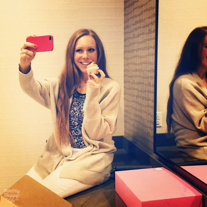 But in order to plan our night we needed some down time. So after the room and hallway had cleared, Annie and I found a cozy spot in the ladies lounge on the fifth floor of the JW and sat by the mirror and ate cupcakes and sipped chilled water while charging our phones, texting and chatting. It was a perfect girlie moment.