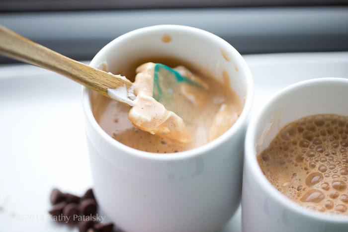 This Cozy-Wozy Coconut Mocha was my treat on a stormy, blustery Friday morning. Silky melted semi-sweet chocolate chips and rich, freshly brewed espresso combine to create the perfect luxurious base. (Oh the aroma!) Add in some special spiced accents and a swirled in dollop of coconut cream and mocha bliss has begun. Cradle this steamy, frothy, chocolate-y mug today!..