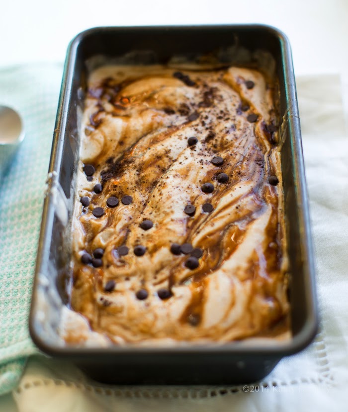 We have been having a crazy spring heatwave here in LA so all my thoughts have been on frosty smoothies, cool bevies and creamy frozen treats. This vegan, blender-made, Almond Butter, Caramel Swirled, Vanilla Bean-Chocolate Chip Ice Cream is perfect for a cool down dessert! Made using homemade coconut sugar caramel, creamy peanut or almond butter, vanilla bean flavor and a banana ice cream base, this dreamy vegan treat is something you can feel good about!